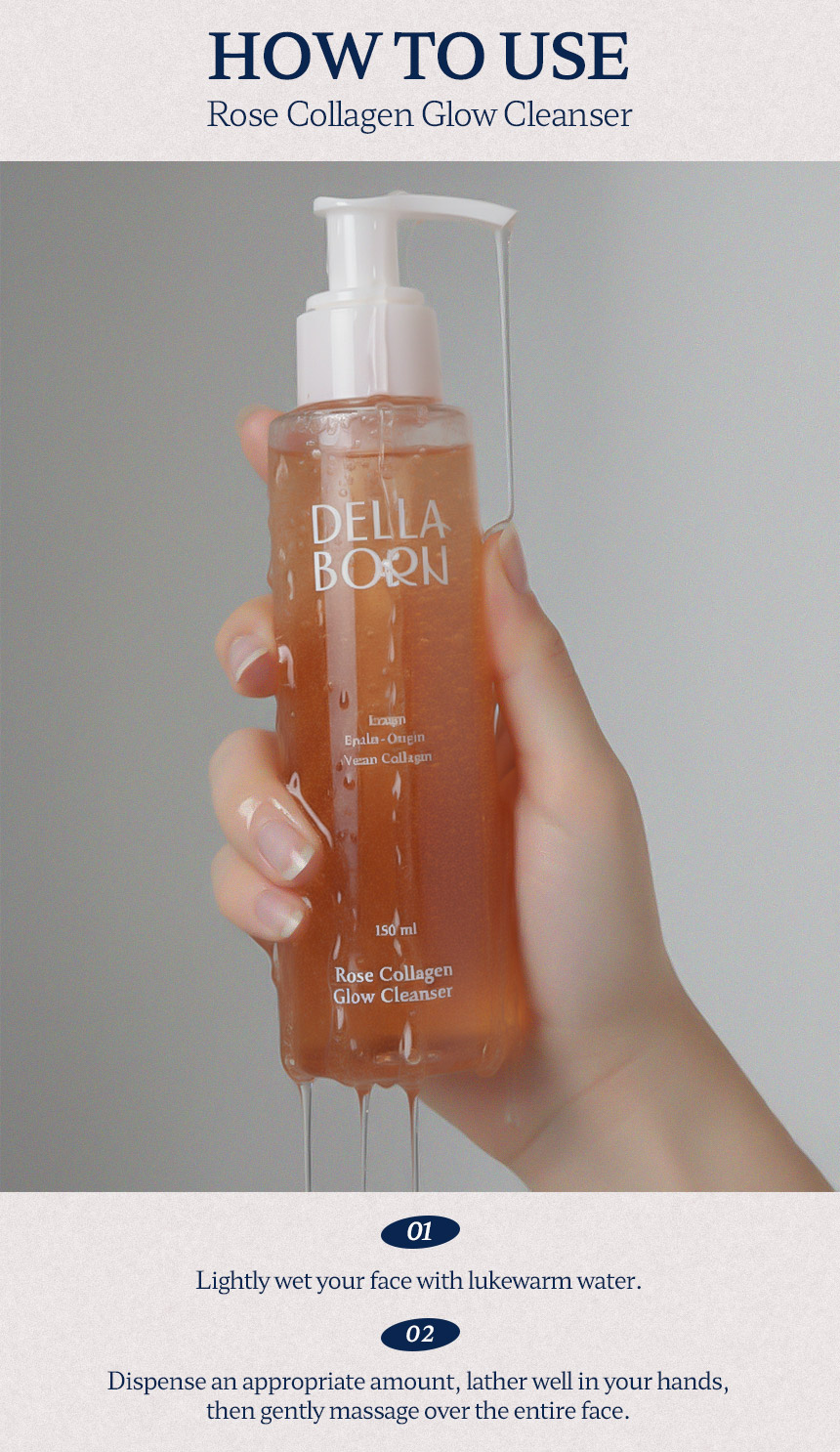DELLA BORN – Gel de Curățare Coreean cu Colagen și Trandafir Collagen Glow 150ml | Curățare Delicată, Hidratare și Luminozitate Ten (K-Beauty)