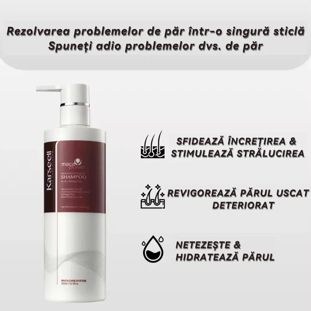 Șampon Karseell cu esență de Maca 500ml – curăță delicat, stimulează regenerarea și întărește rădăcina.
